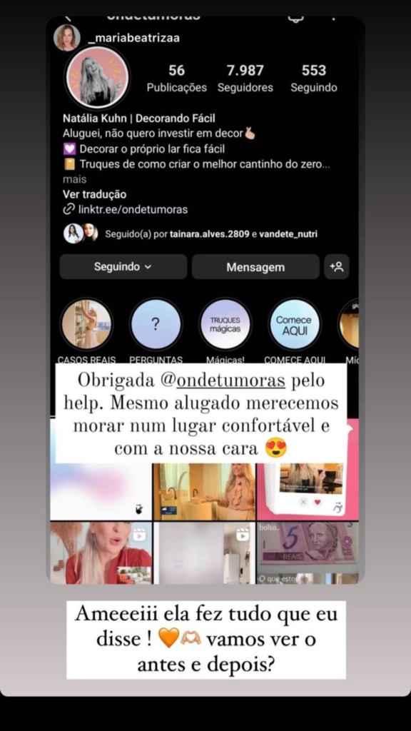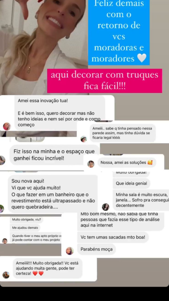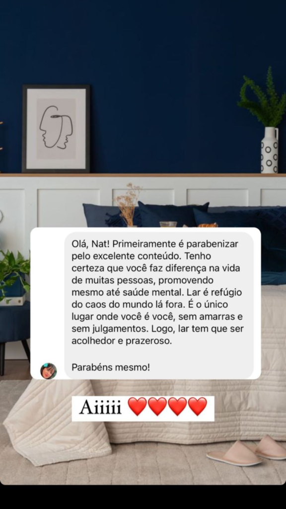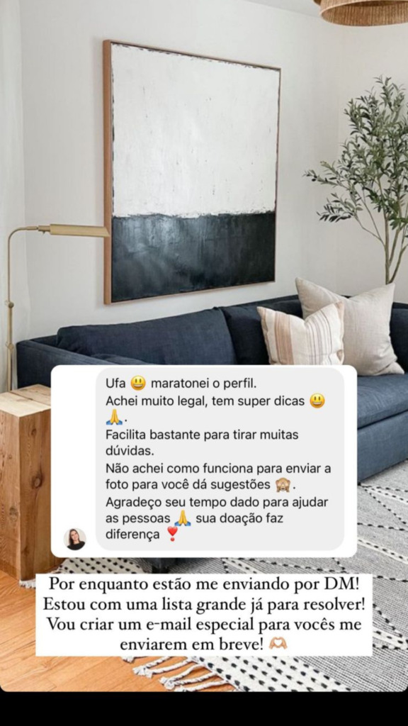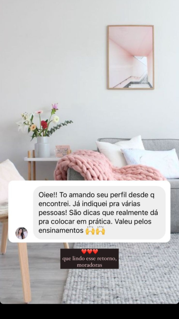 A partir daí, com esse olhar mais voltado para decoração de um imóvel alugado, comecei a compartilhar as principais dicas e truques que utilizei na ocasião para decorar meu apartamento. Depois de tantos elogios e feedbacks positivos no perfil, pensei em reunir todo esse conteúdo que vinha produzindo de uma maneira mais completa e didática, a fim de possibilitar que outras pessoas também pudessem transformar seu ambiente, mesmo se ele fosse um imóvel alugado.